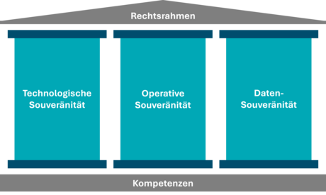 Digitale Souveränität entsteht dort, wo rechtliche, technische und organisatorische Fähigkeiten ineinandergreifen. Unser Modell basiert auf drei zentralen Säulen – jede für sich essenziell, gemeinsam tragfähig: