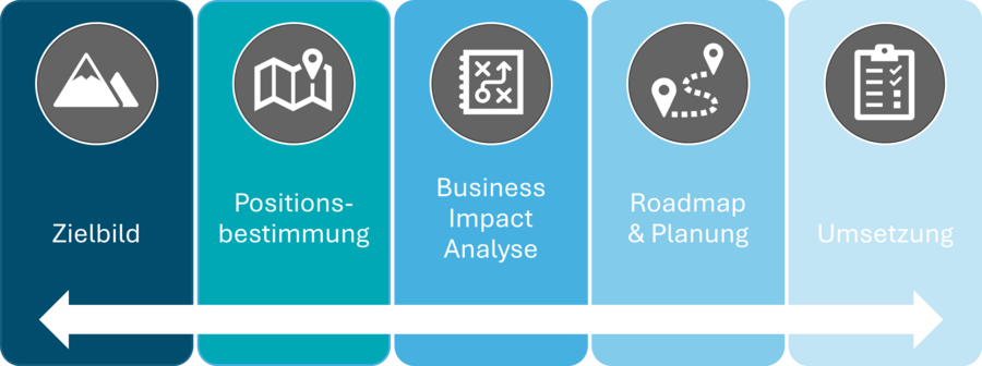 Auf Basis der Analyse unterstützen wir Sie bei der Entwicklung einer konkreten Umsetzungsstrategie. Wir legen Verantwortlichkeiten, Zeitrahmen und Ressourcen fest – praxisnah, realistisch und priorisiert.